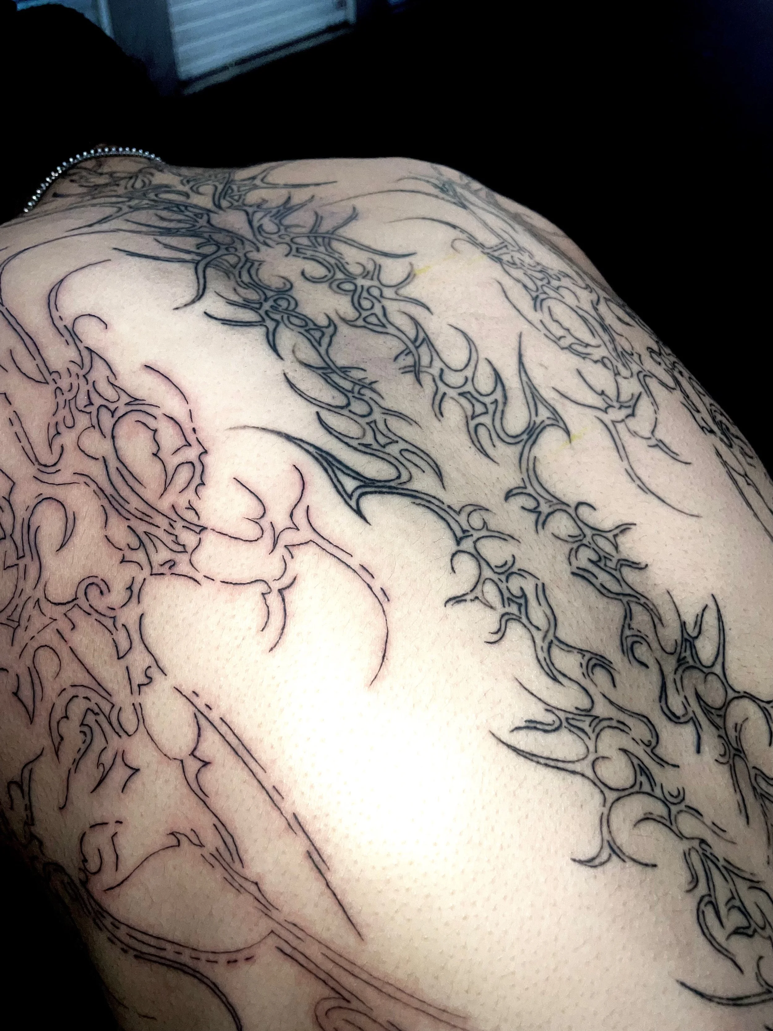 husbandmomentum (Moon) is an Oakland based tattoo artist & co-founder of Flesh Pursuit studios. They play with blackwork, fineline, cigilism, and american traditional styles. Their art is strongly tied to their relationship with femininity and queerness.